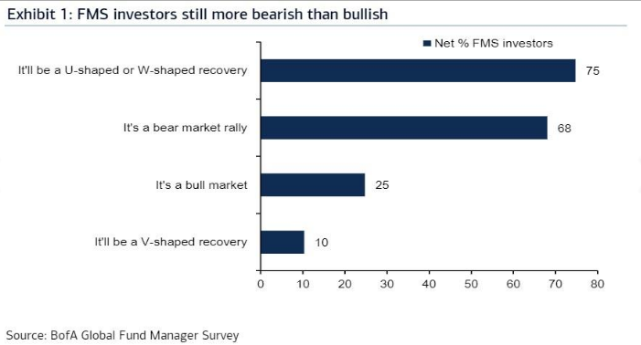 美银美林月度基金经理调查显示,对疫情第二次暴发的担忧连续两个月成为投资者最担心的风险。68%的投资者称股市的上涨只是熊市反弹,只有四分之一的人认为股市已经进入了新的牛市。