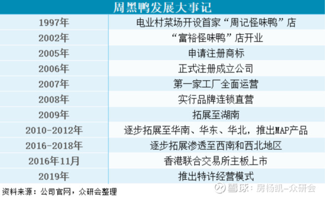 周黑鸭国际控股有限公司(以下简称周黑鸭)是一家专门从事卤鸭、鸭副产品、卤制红肉、卤制蔬菜和其他卤制禽类和水产类的生产和销售的企业。周黑鸭首店于1997年开业,历经二十余年发展,周黑鸭已成为休闲卤制品行业市场占有率第二的企业,截至2019年底,周黑鸭拥有自营门店1301家,特许经营门店5家,覆盖中国17各省份及直辖市内100个城市。2019年,公司营收达31.93亿元。