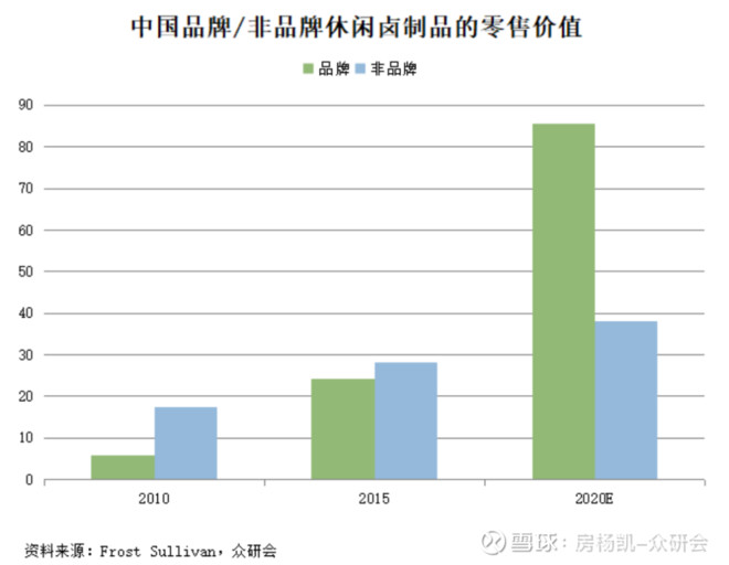 据Frost Sullivan预测,2020年我国休闲食品行业市场规模将达到12,984亿元,休闲卤制品的市场规模在2010-2015年间的符合增长率为17.6%,2020年将以18.8%的复合增长率达到1,235亿元,但休闲卤制品在整个休闲食品市场中占比仅有9.5%,且细分行业内部集中度低,三大龙头企业占比不到16%,随着各省逐步加强食品小作坊卫生监管力度,企业未来将有可能依托品牌化效应逐步增加市场占有率。