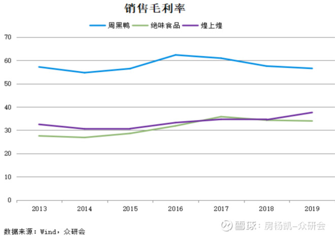 另外,周黑鸭对于自身的产品定位仍是偏高档,但卤鸭本身其实并没有什么高档的特性,周黑鸭也并没有营造出这样的市场认知,只是一味从价格上体现,自然会流失一部分消费者到更加接地气的绝味和煌上煌了。
