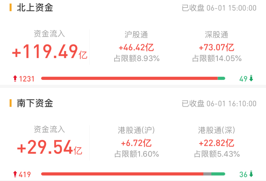北上资金今日净流入119.49亿元。