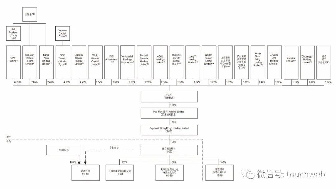 PopMartHehuoHoldingLimited为一家于英属维京群岛注册成立的获豁免投资控股公司,王宁持股43.18%、杨涛持股15.11%、司德持股0.92%、刘冉持股9.23%,此外,公司12名其他僱员共同拥有。