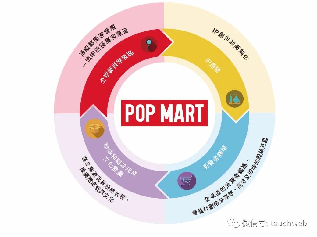 泡泡玛特成立于2010年,发展近十年来,围绕艺术家挖掘、IP孵化运营、消费者触达以及潮玩文化推广与培育四个领域,POPMART泡泡玛特品牌文化构建了覆盖潮流玩具全产业链的综合运营平台。
