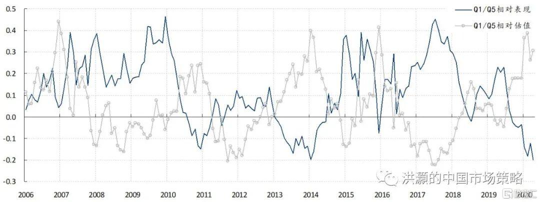 图表: A股低估值与高估值组合的相对估值指标,并非运行到极端之后就一定要均值回归