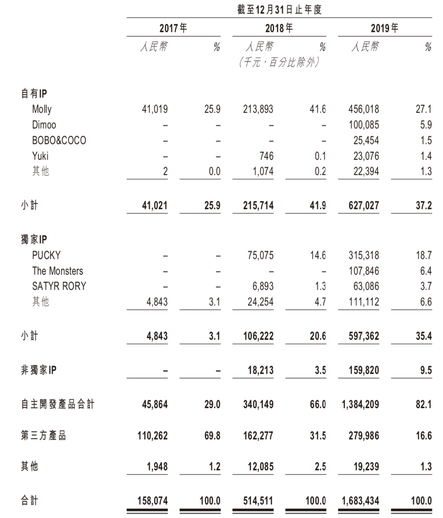 其中,为公司带来最大贡献的,非自有IP—Molly莫属。