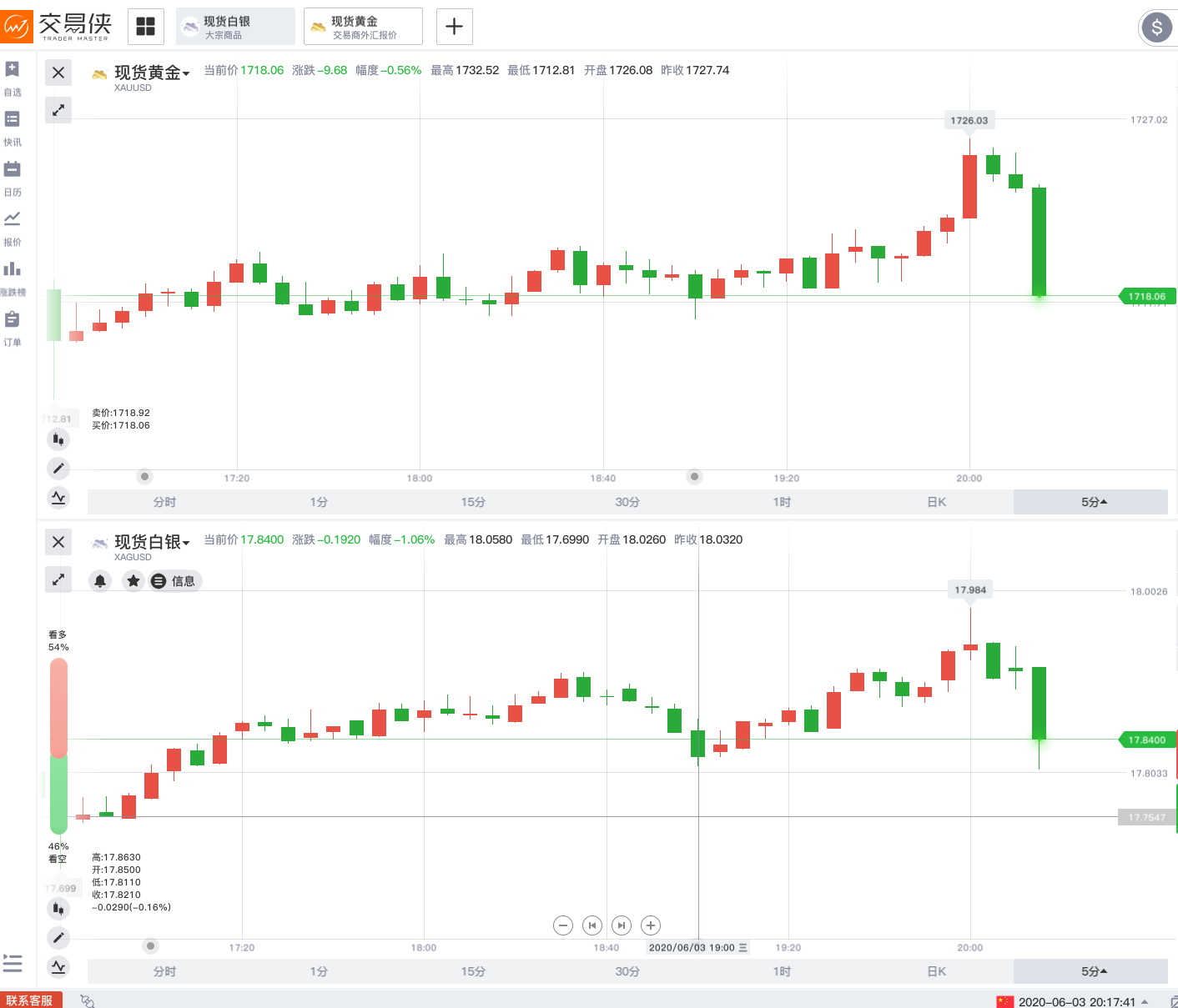 “小非农”ADP数据公布后,现货黄金短线小幅下挫,三分钟后现货黄金短线跌幅扩大至7美元,报1716.63美元/盎司 。现货白银短线下挫0.12美元,跌1.16%报17.82美元/盎司。美股三大股指期货短线波动不大。道指期货涨0.8%,纳指期货涨0.41%,标普500指数期货涨0.55%。