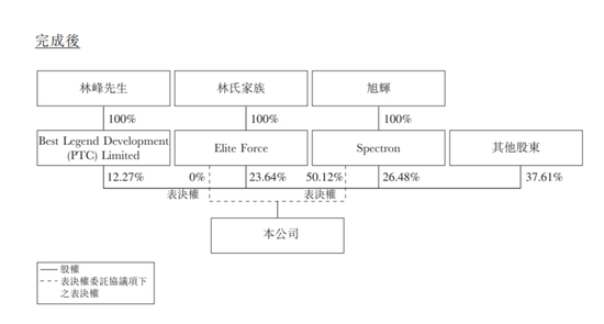 在永升生活配股之前,公司发布一则委托协议公告,根据公告,公司大股东林氏家族持有公司28.64%的股权。本协议主要有两部分:一是将5%卖给旭辉持有Spectron,买卖完成后,旭辉将持有公司26.48%股权,跻身第一大股东。二是永升将委托旭辉控股行使公司3.6亿股的表决权,完成后,旭辉将拥有永升50.12%的表决权。
