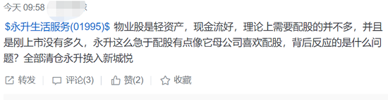 有投资者表示,物业股是轻资产,现金流好,理论上需要配股的不多,背后反映了什么问题,清仓永升。