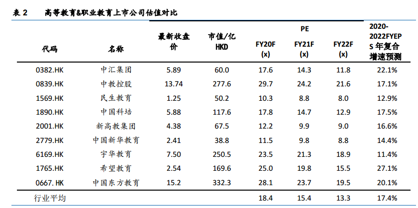 从在校人数和增速来看,希望教育都在港股高教板块中排名前列。