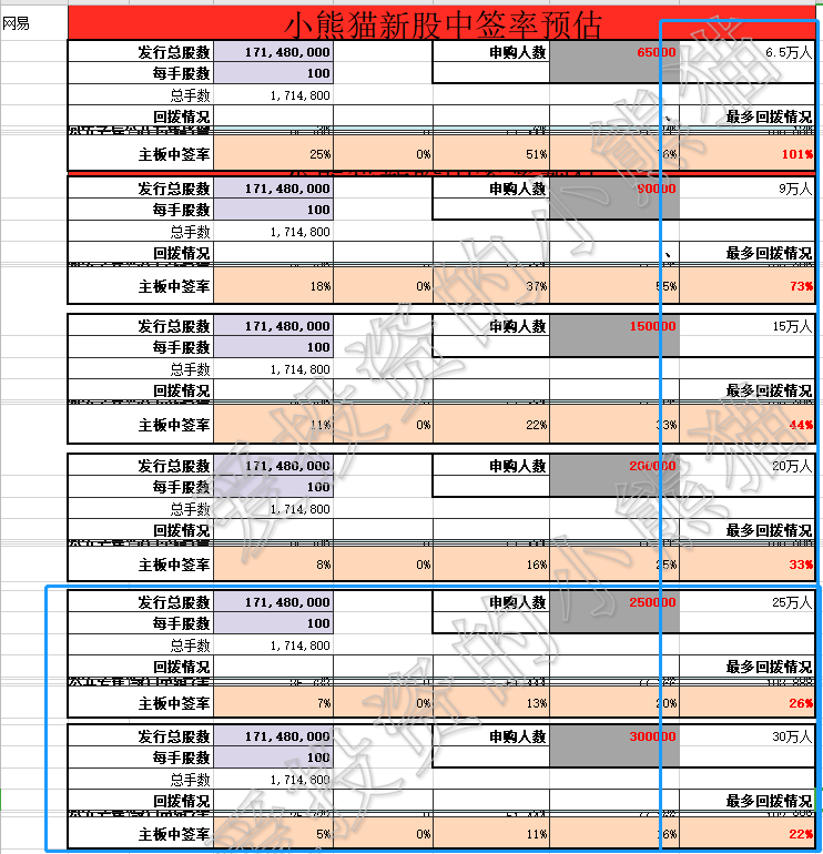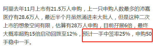 不少打新大V给出了自己的中签率预测,基本上认为20万人认购的情况下,最终回拨12%,一手中签率为20-30%。