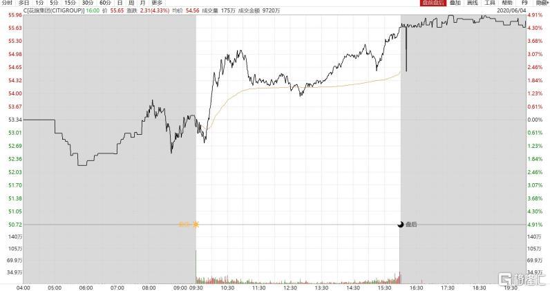 6月4日,前期在反弹中领涨的大型科技股出现回调趋势,苹果公司、亚马逊和Facebook分别收跌0.86%、0.72%和1.68%。另一方面,银行股在回调中保持价格坚挺,美国银行、摩根大通以及花旗集团分别收涨3.04%、2.08%和4.33%。