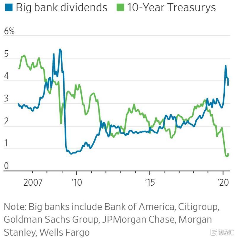 欧盟和英国两个月前暂停了银行派息,原因是监管机构向银行施压,要求它们暂停派息,以支持放贷和建立准备金。与这些国家地区不同的是,美国监管机构目前还没出现此类要求。而随着美联储对银行的新一轮压力测试将至,市场将关注点转向美国最大的几家银行。