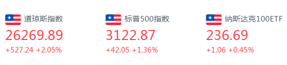 截至收盘,标普500指数跌10.50点,跌幅0.34%,报3112.35点;纳指跌67.10点,跌幅0.69%,报9615.81点;道指涨11.90点,涨幅0.05%,报26281.82点。