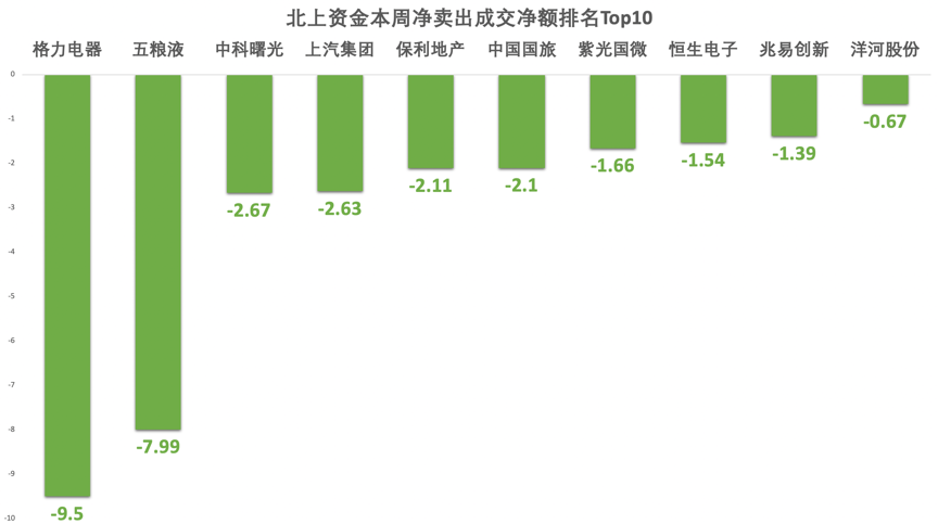 北上资金净卖出方面,格力电器、五粮液等热门蓝筹被北上资金卖出较多,分别达到9.5、7.99亿元。此外,中科曙光、上汽集团和保利地产也遭到外资抛售。