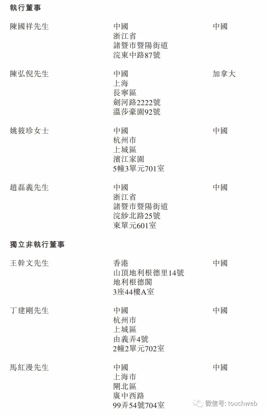 祥生控股执行董事为陈国祥、陈弘倪、 姚筱珍、赵磊义;独立非执行董事为王干文、丁建刚、马红漫。陈弘倪已经改为加拿大国籍。