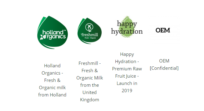 Bevcorp还展示了3个饮料品牌,涉及有机牛奶和果汁