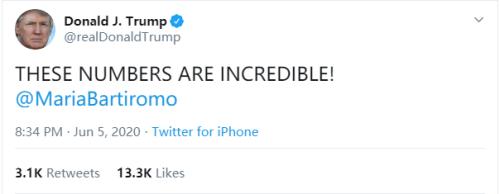 6月5日晚,备受关注的美国5月非农就业数据新鲜出炉,并好于预期。美国总统特朗普立马在社交媒体送上祝贺,称之为“不可思议的数字”。
