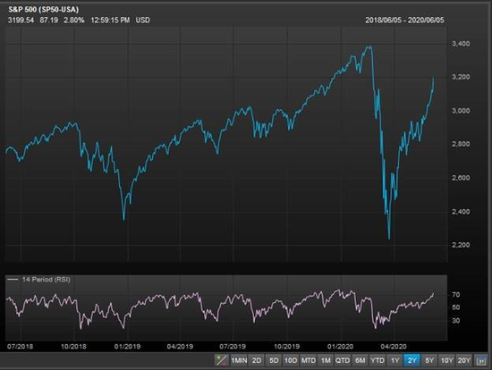 本周美股依然反弹强劲。截止至周二,美股录得有史以来最好的50日反弹。 到周五,标普500指数几乎抹平了今年的全部跌幅。在经历了37%的暴跌、疫情大流行以及经济依然受限之后,该指数在2020年仍然在为投资者赚钱。