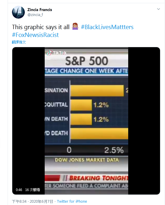 原标题:展示黑人遇害事件后金融市场积极反应被骂,福克斯道歉了