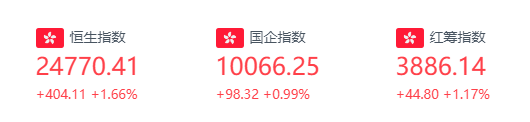 恒指周五早盘高开21.88点或0.09%,报24388.18点。截至收盘,恒生指数涨404.11点或1.66%,报24770.41点,全日成交额达1348.66亿。国企指数涨0.99%,报10066.25点,红筹指数涨1.17%,报3886.14点。恒指上周累计涨幅达7.88%,最高点为24810.22点,最低点为23539.91点。主要是受美股持续飙涨以及多只重磅明星公司赴港二次上市的刺激持续引爆港股市场。