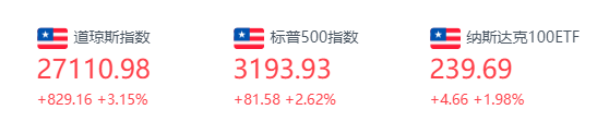 上周五在非农数据超预期的刺激下,美股全线大涨,道指一度涨超1000点,纳指创盘中历史新高。截至收盘,道指涨829.16点,或3.15%,报27110.98点;纳指涨198.27点,或2.06%,报9814.08点;标普500指数涨81.58点,或2.62%,报3193.93点。上周,标普500指数累涨4.9%,道指累涨6.8%,纳指累涨3.4%。