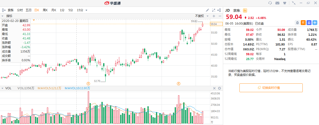 京东招股书中显示,本次上市公开发售价将参考美国存托股于定价日(6月11日前后,不迟于6月17日)或之前的最后交易日在纳斯达克所报收市价等因素确定,并且不会超过每股香港发售股份236港元。