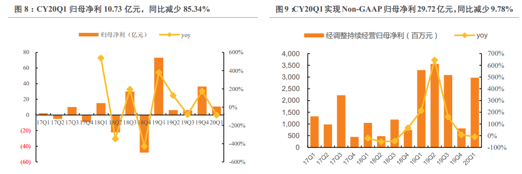 招股书同时披露了京东最新业绩,其2020年一季度营收1462亿元,同比增长20.7%;净利润约为11亿元,去年同期盈利73亿元;非美国通用会计准则下的净利润约为30亿元,较去年同期的33亿元略有下降。
