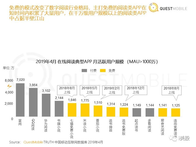 免费模式更多的采取外购版权的内容战略,以及大规模投放打法,培育阅读市场轻度用户(七猫和番茄小说的崛起,还与百度和字节跳动公司的流量优势有关)。通过该方式获得的用户,粘性和商业价值尚待证明,目前对于阅文的基本盘冲击非常有限。凭借着阅文强大的内容生态,阅文的免费阅读后来者居上并不是没有可能。