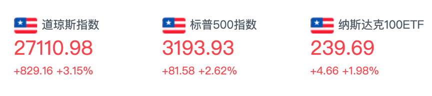 上周,受疫情拐点已至、经济复苏预期等多重因素影响,美股三大股指大涨,纳指也一度创下历史新高。截止周五收盘,道琼斯指数一周累计上涨6.81%,报27110.98点;标普500指数一周累计上涨4.91%,报3193.93点;纳斯达克综指一周累计上涨3.42,报9814.08点。