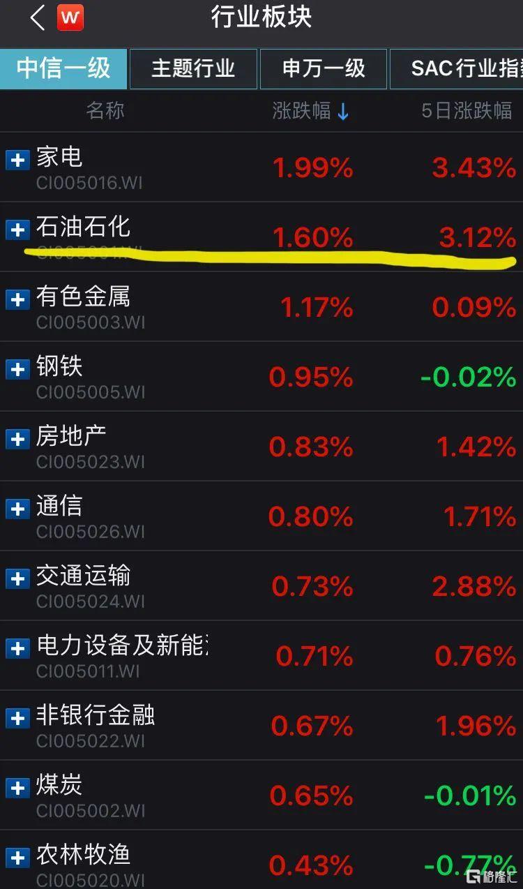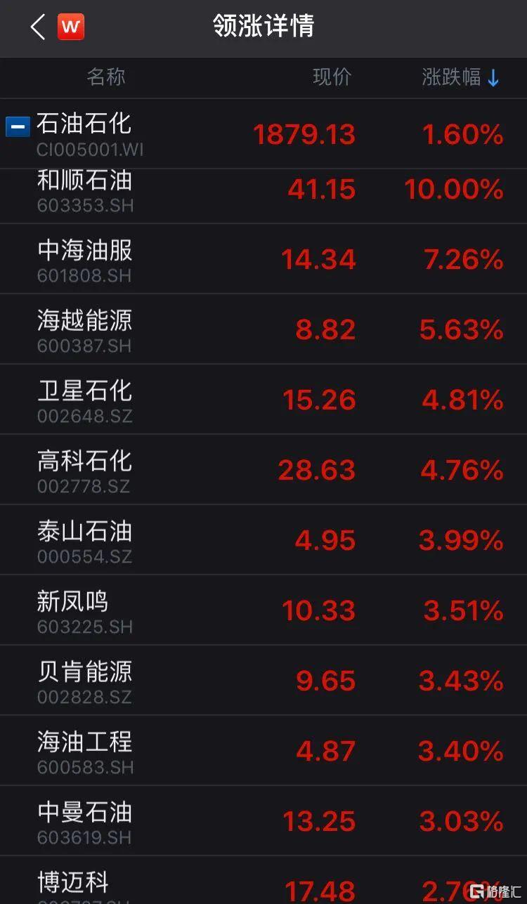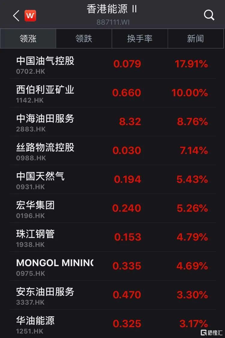 港股市场的能源股涨幅当天位居涨幅榜第二位。