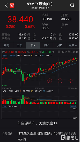 北京时间6月8日WTI和布油均突破40美元,为3月6日以来首次。