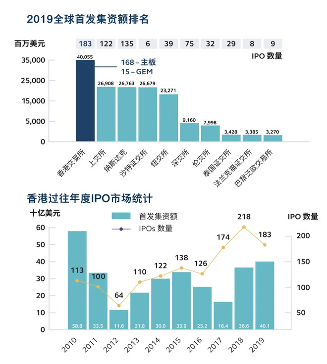 其中,阿里巴巴[9988]募资1010亿港元,百威亚太[1876]募资额450亿港元,两家占到2019年港交所募资额近半。
