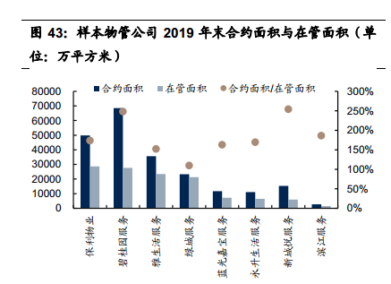 第三是在物业公司配股潮来袭之时,也会给予投资者寻觅错杀的机遇。比如从上市物管公司看,保利物业、碧桂园服务等8家上市物管公司合约面积共计21.8亿平方米,在管面积12.2亿平方米,合约面积对在管面积的覆盖率达到180%, 最高的新城悦服务达到254%。