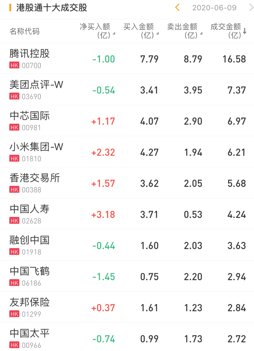 今日,南下资金净买入中芯国际1.17亿港元,净买入小米集团2.32亿港元,净买入中国人寿3.18亿港元,净买入香港交易所1.57亿港元。此外,南下资金今日净卖出腾讯控股1亿港元。