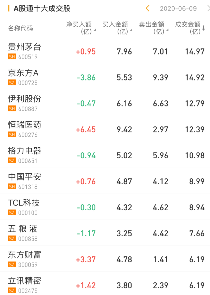 今日,北上资金净买入恒瑞医药6.45亿元,净买入东方财富3.37亿元,净买入贵州茅台0.95亿元,净买入中国平安0.76亿元。