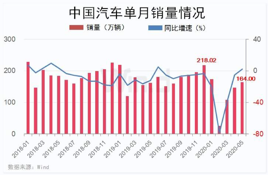 6月8日,乘联会公布数据显示,中国5月份广义乘用车零售销量164万辆,同比增加1.9%。中国汽车单月销量已连续4个月攀升,同比增速则是时隔11个月后重回正增长。