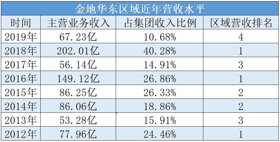 梳理近些年金地的营收数据不难发现,华东区域一直是金地较为重要的营收来源。