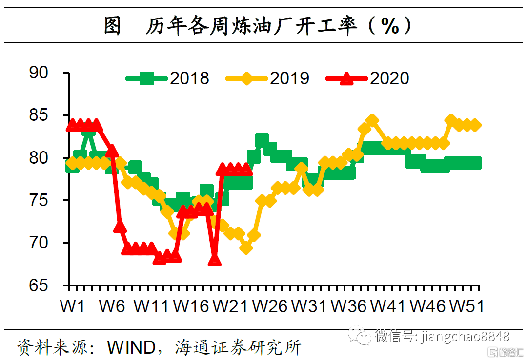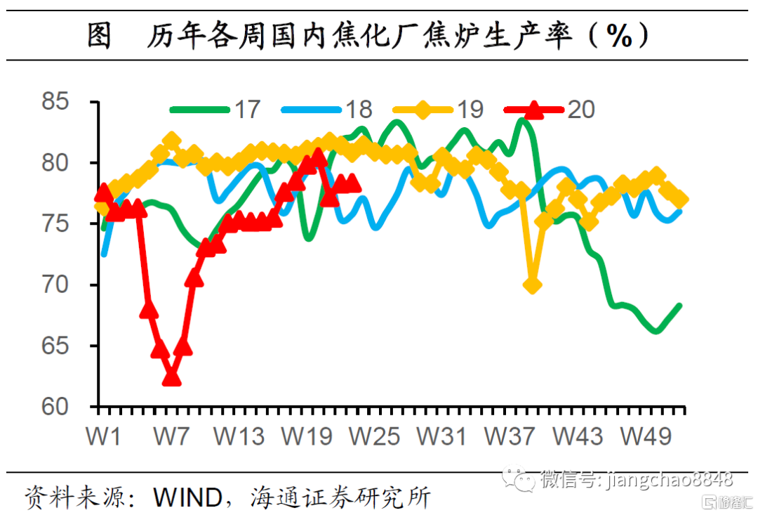能源:炼油开工相对偏强,焦炉生产未及去年。从能源品生产行业来看,基本已能够恢复到往年同期的正常水平,甚至个别行业表现更强。以炼油炼焦为例,国内焦化厂焦炉生产率水平较19年同期已经颇为接近,而且已达到甚至超过18年同期及疫情前的水平,国内炼油厂开工率自5月以来就一直高于18年和19年同期水平,指向生产态势较旺。