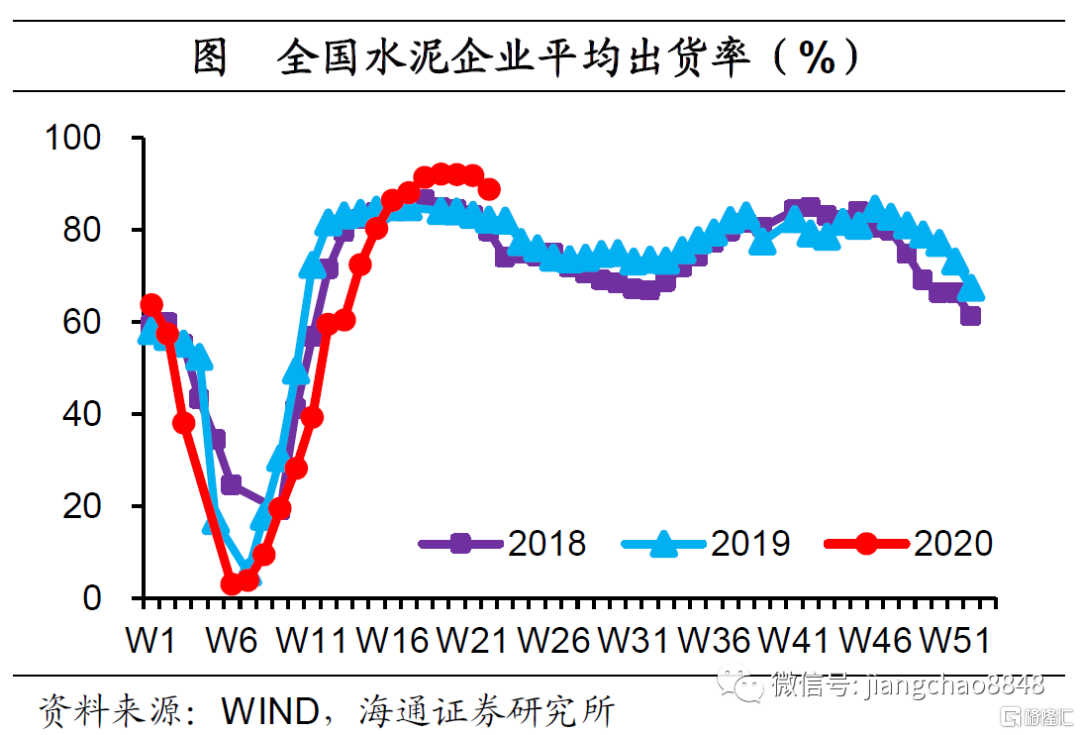 水泥:出货高过去年同期,恢复并有小幅增长。作为重要的建筑材料,水泥行业需求在疫情后恢复相对较快,5月以来不仅已完全恢复,甚至较去年同期有小幅增长。