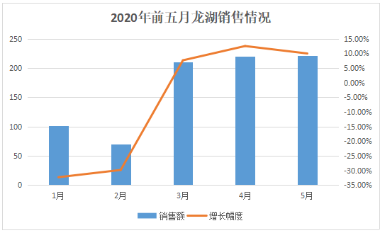 与2020年首两月相比,龙湖的销售增幅已由负转正,但从环比的情况来看,该公司的销售情况较4月有所放缓。