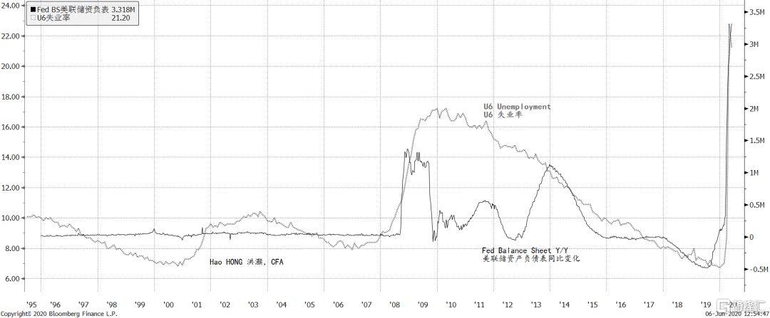 图表1: 历史上最糟糕的美国失业率和破纪录的美联储扩表