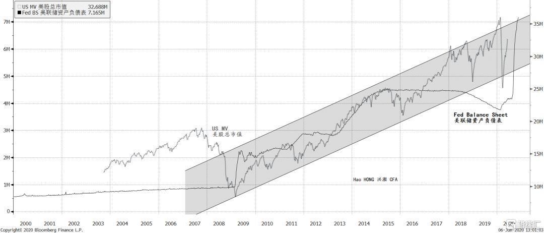 美联储资产负债表的规模与美股市值之间存在着紧密的相关性(图表2)。这种相关性自2008年以来一直存在。当时美联储启动了量化宽松,以把美国经济从1929年大萧条以来最严重的衰退中拯救出来。至今,市场对美联储托底任何经济衰退的决心已经深信不疑。