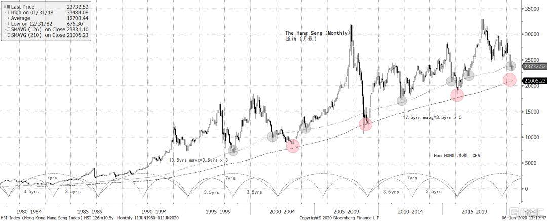 在三月的暴跌中,恒生指数最低点一度距其17.5年的长期移动平均线只有100点左右,而现在徘徊于10.5年移动平均线附近。因此,我们认为,在当前周期中,3月份的最低点是一个有重要意义的低点;即便不确定性持续上升,恒指也不太可能再次跌破这个低点。加之恒生指数的估值处于历史低位,我们认为长期投资者也应关注恒指。这将是一次很好的长期投资。