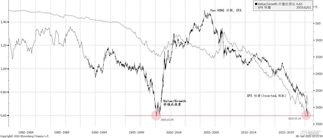 图表4: 5月19日,价值相对于成长的弱势已达到了2000年3月的极端水平