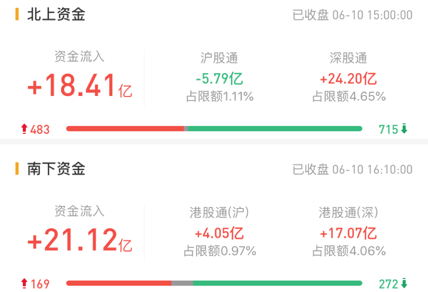 北上资金今日净流入18.41亿元。