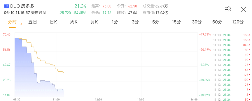 华盛资讯6月10日讯,拼多多股价大涨逾5%,盘中一度创下历史新高,而房多多在此前暴涨后开启下跌,现跌超50%。消息面上,拼多多宣布618补贴将不设上限,房多多则发布了上市后首份财报。