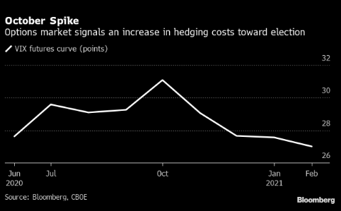 美国股市从3月份的Covid-19危机低点回升,再加上拜登最近的强劲民调数据,使得投资者恢复了对11月大选的兴趣。高盛本月曾提出一种情形假定,称民主党主导的税收政策变更,将使得2021年的标普500指数成分股每股收益可能减少12%。