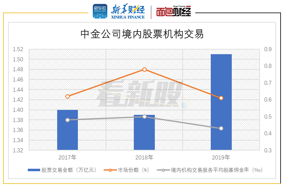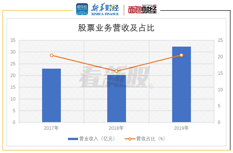 数据显示,2019年中金公司股票业务实现营业收入32.29亿元,同比增长60.25%,在总营收中的占比由15.61%提升至20.49%。