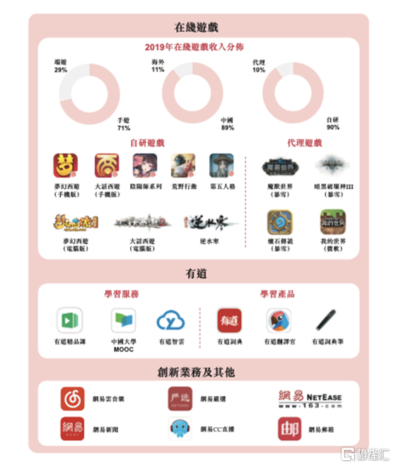 其中,游戏被认为是网易最赚钱的业务。2001年,网易开始发展在线游戏业务,自主研发了《梦幻西游》、《阴阳师》等长线产品,位居全球第二大移动游戏公司。财报显示,2020年第一季度网易游戏净收入为人民币135.18亿元,同比增长14.1%。截至目前,游戏业务的收入约占网易总收入的八成左右,更提供了大约九成的利润。
