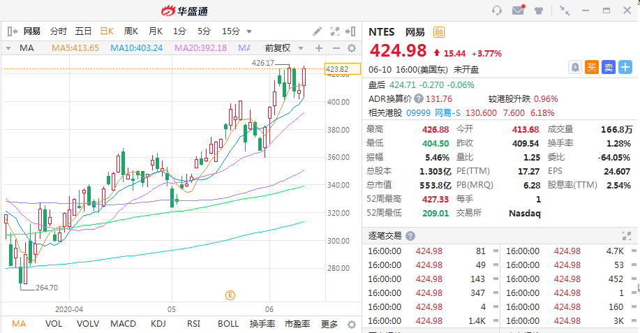 与阿里巴巴相似,网易同样是已经在美国上市的企业,因此其美股的走势和港股就有了联动效应。